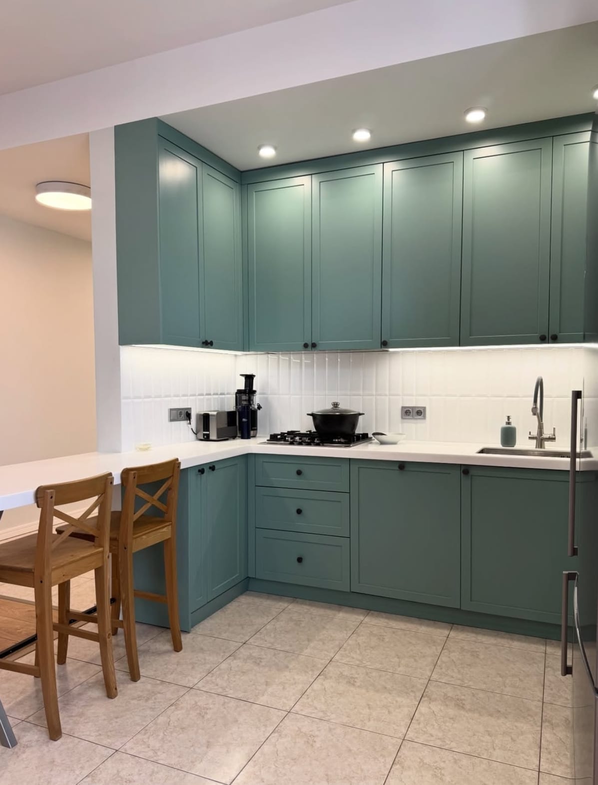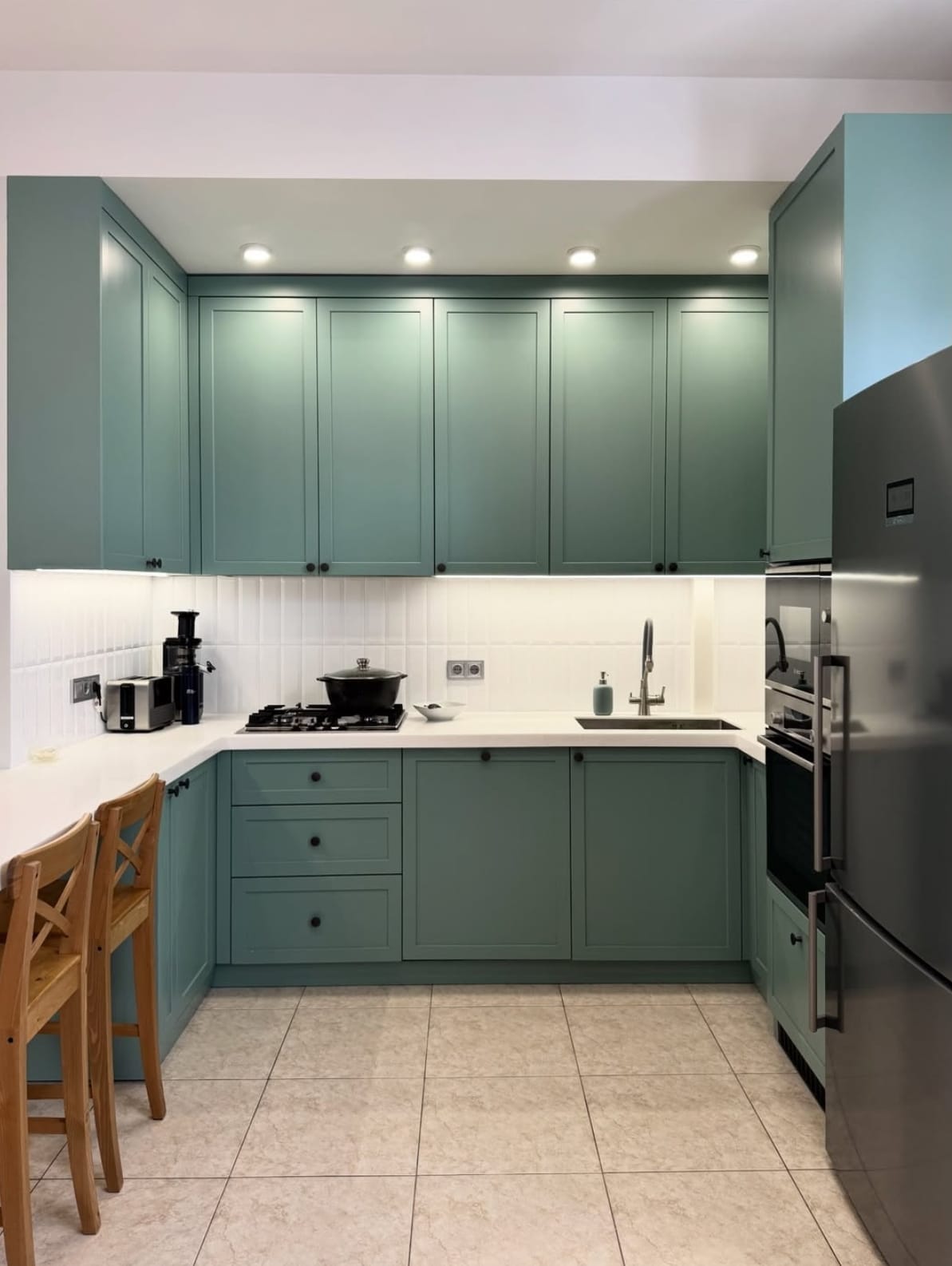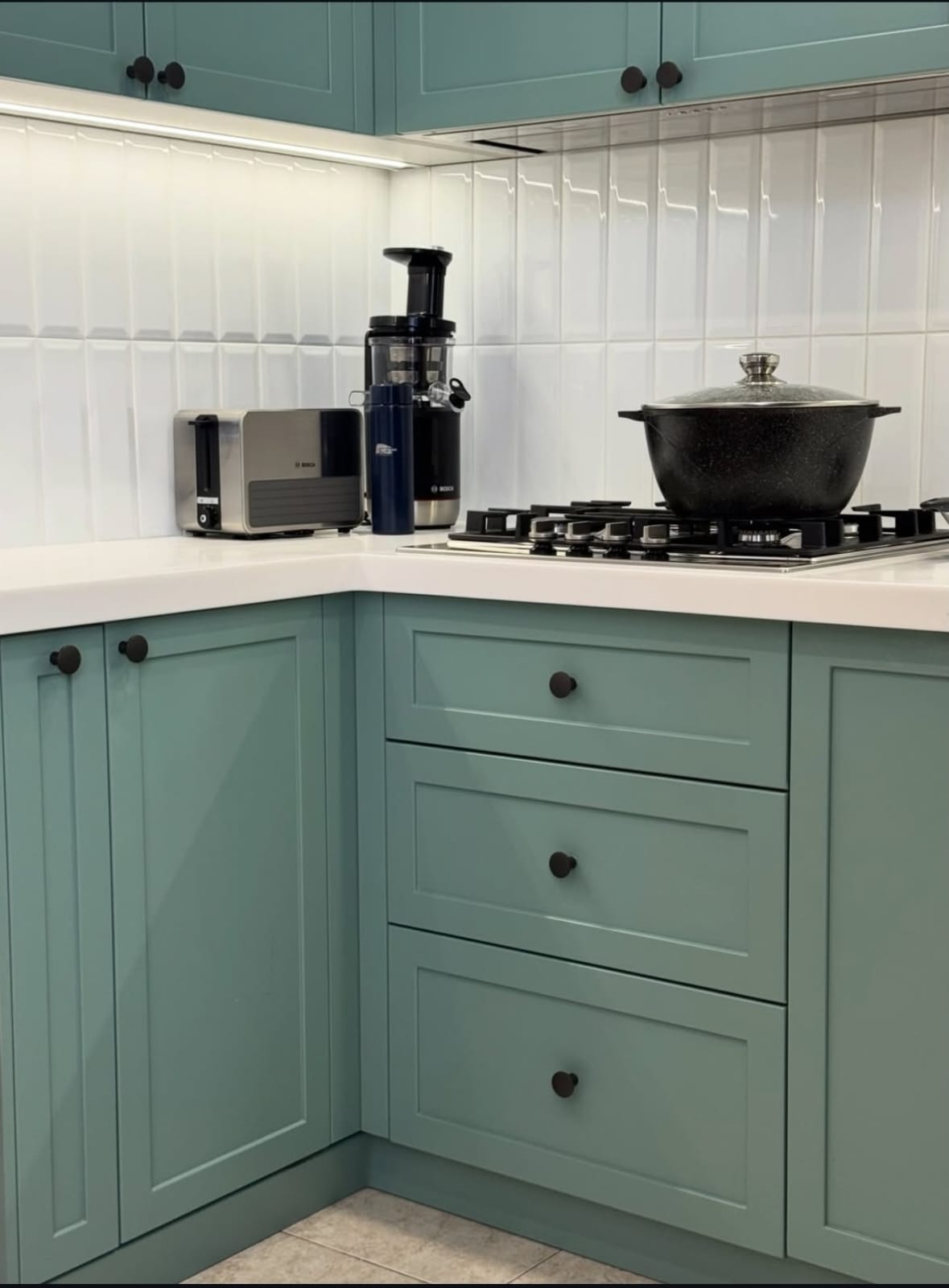 Olive Oil MDF სამზარეულო წარმოადგენს თანამედროვე დიზაინისა და ფუნქციურობის იდეალურ კომბინაციას. ავეჯი შესრულებულია Olive Oil ფერში შეღებილი MDF-ისგან, რაც ინტერიერს ანიჭებს თბილ და ელეგანტურ იერს.